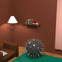 You should escape this bedroom quickly because that spiky ball is about to roll around the room and destroy everything. Good luck!